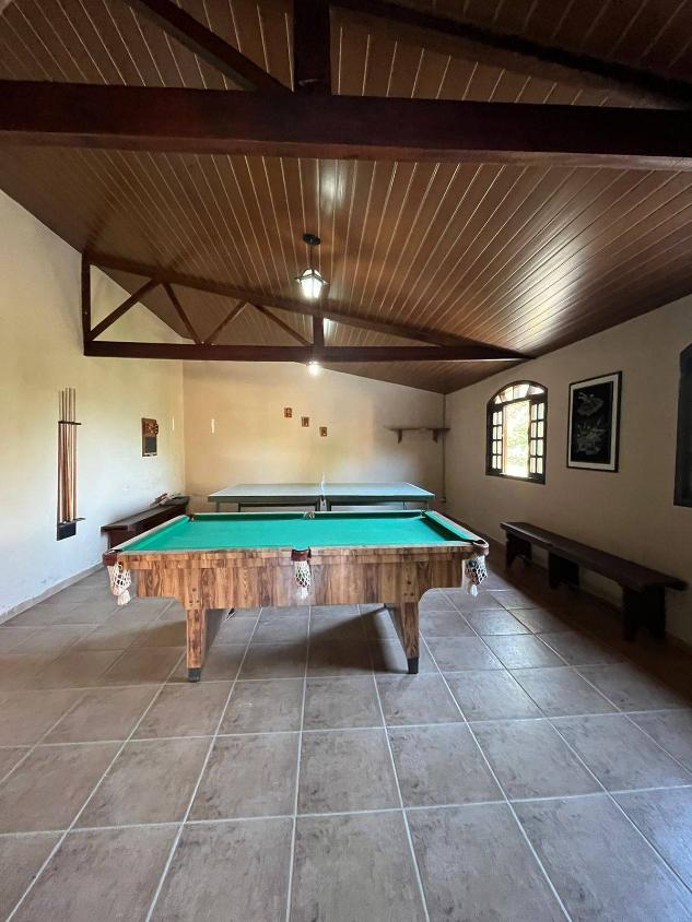 Casa principal com 4 quartos, sala, cozinha, 3 banheiros, sauna, salão de jogos, piscina 10x4,5, churrasqueira e forno de pizza.Casa de caseiro com 2 quartos, sala, cozinha, banheiro, churrasqueira e fogão a lenha.Propriedade com 2 lagos, 2 poços artesianos, horta, 2 canis, galinheiro, curral e plantação de eucalipto.